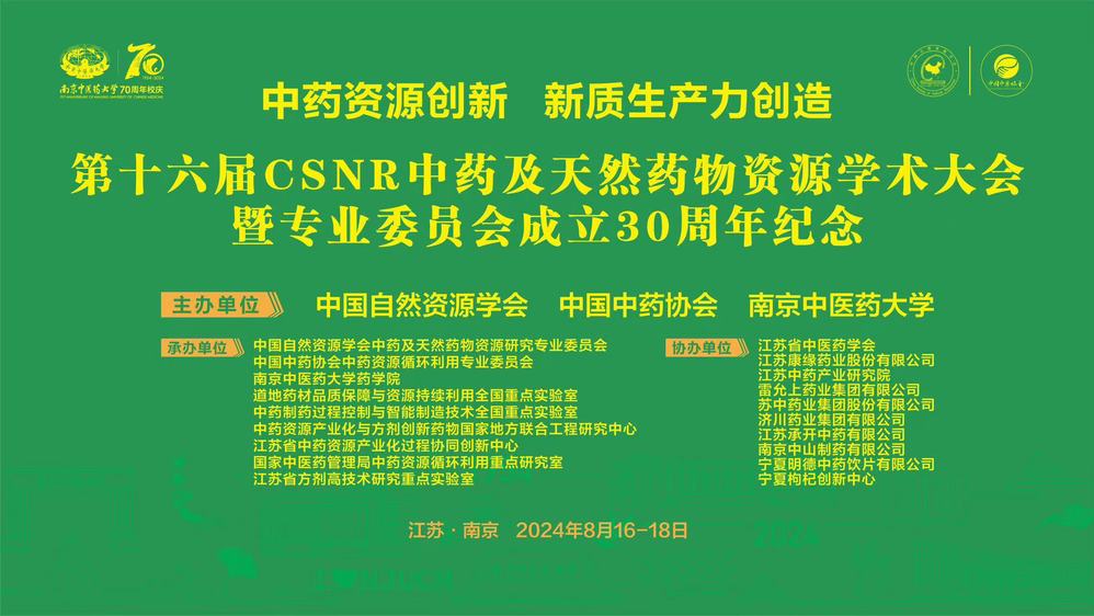 值此南京中醫藥大學建校70周年暨中國自然資源學會中藥及天然藥物資源研究專業委員會成立30周年之際,為了回顧中藥及天然藥物資源學科發展歷程,展望未來發展方向,快速提升中藥資源領域科技創新服務國家重大戰略和地方經濟發展的能力,在開辟中藥資源產業發展新領域新賽道、推動因地制宜發展新質生產力上貢獻力量,由南京中醫藥大學、中國自然資源學會聯合中國中藥協會主辦,擬定于2024年8月16號至8月18號在江蘇省南京市召開中國自然資源學會中藥及天然藥物資源研究專業委員會成立30周年學術會議。會議主題為“中藥資源創新與新質生產力創造”?,F將有關事宜通知如下: